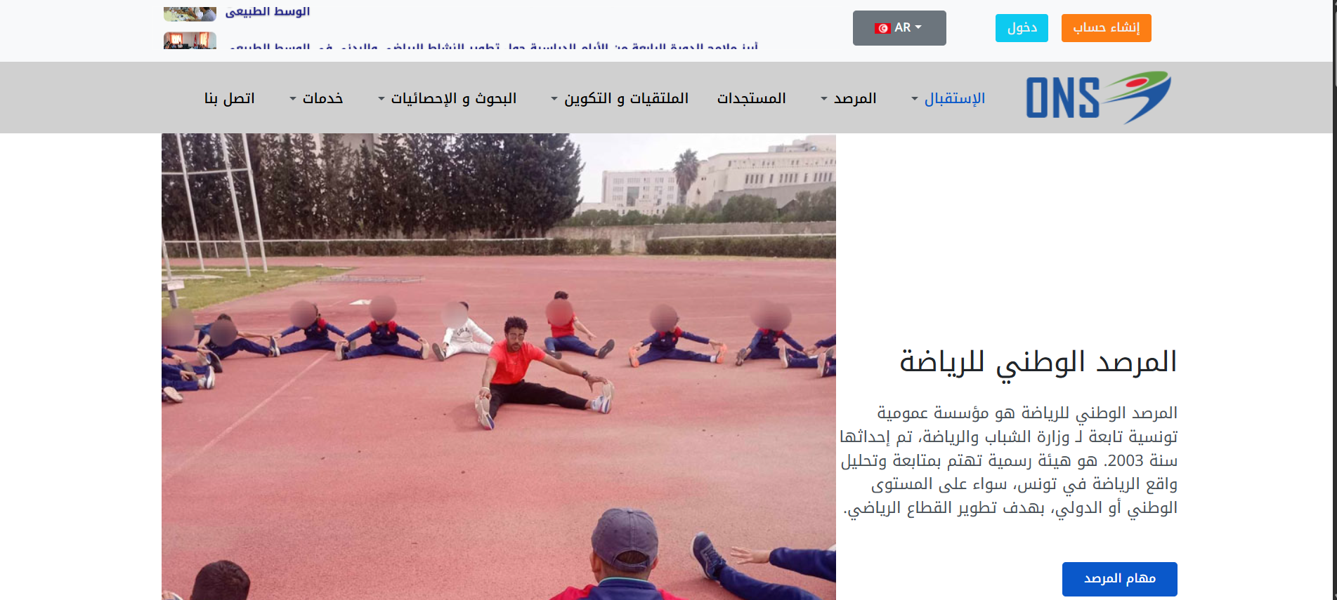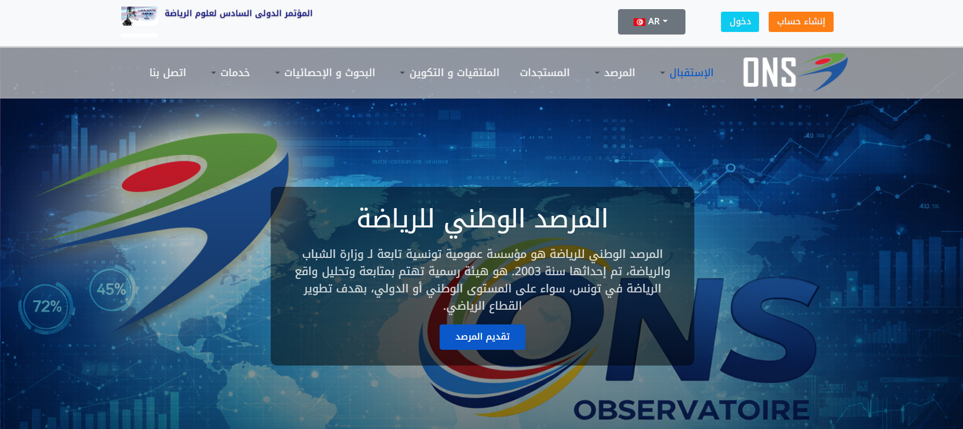 L'Observatoire National du Sport est une institution publique dédiée à l'observation, l'analyse et le développement du domaine sportif, à travers l'élaboration de recherches et d'études, la collecte de statistiques, et l'organisation de formations et de rencontres scientifiques pour soutenir la prise de décision et promouvoir le sport.