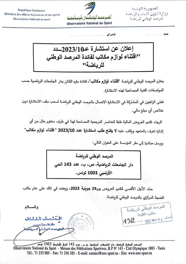 استشارة عدد 10/2023 لإقتناء لوازم مكاتب