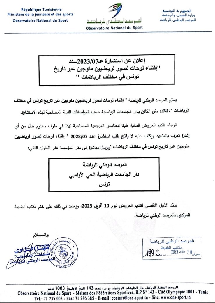 استشارة عدد 7/2023 لإقتناء لوحات صور رياضيين