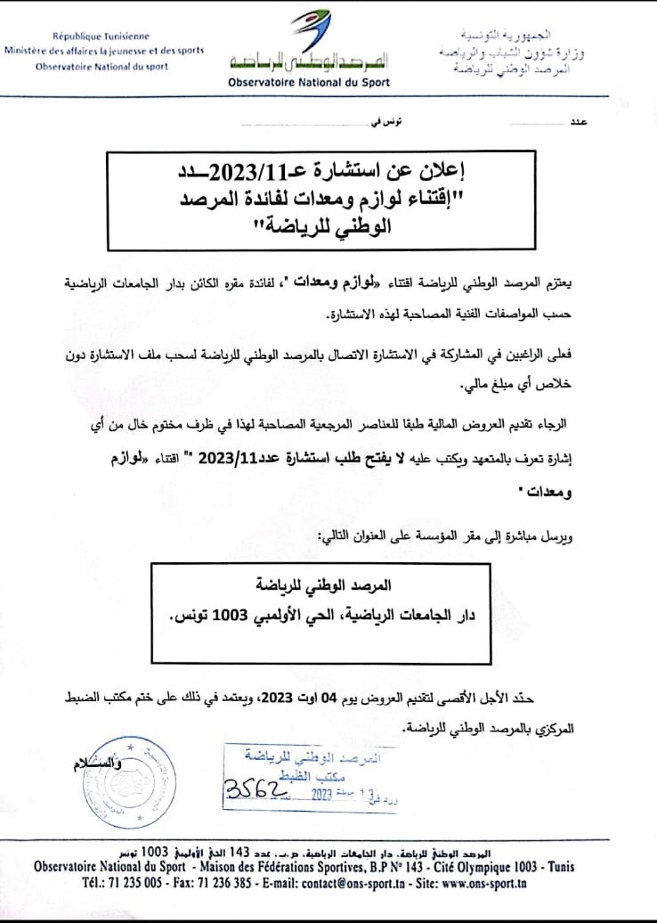 استشارة عدد 11/2023 لإقتناء لوازم ومعدات